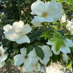 ホワイトノックアウト🤍 春と比べるとまばらですが暑いのに沢山の花✨秋まで繰り返し咲きます🤍 丈夫でとても花付きの良い薔薇です☺️