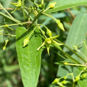 8月3日撮影 国営みちのく杜の湖畔公園 林の中を移動中に見つけました。星形の花です。 スズサイコという花がつぼみの形も含めて近いような気がするのですが、葉の形が違うんですよねー。 もしかして、これはスズサイコに蔓性植物が巻きついているとか…???🤔 (8月13日追記) nao師匠にヒントをいただき、たくさんの品種の中から、これでは?と思うものを教えていただきました。 わたしの見解?とも一致しましたので アズマカモメヅルといたします。 (詳細はコメント欄を…) アズマカモメヅル ガガイモ科カモメヅル属
