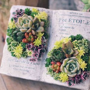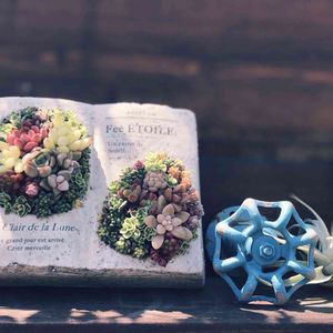 ブック型寄せ植え📖🌱 小さいスペースに_φ(・_・ツメツメ🌱 根付くまではしばらく平ら置き╰(*´︶`*)╯♡ merrybell さんのブック型、やっぱりかわいい❤️