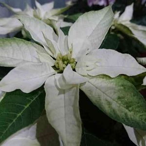わが家のプリンセチア ピュアホワイトでは無いけれど GSの投稿をみて ほしくなりました グリーンが少し入っています 今日はチビッ子たちの パパがメズラシクお休みで お掃除や花壇の掘り起こしなど 色々はかどりました(^^) が❕ 腰が痛い😞💥 これ位のことで お恥ずかしい(T_T) いかに普段 ダラダラしてるか😓 いや お花を眺めているのです(^^)