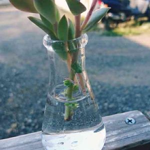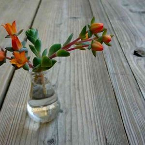 おはようございます☀️ 暑いです。 ファンクイーンの花芽をチョンパしてフラスコ瓶に挿してはやひと月が経とうとしてます。 花はすっかり枯れてますが、なにやら茎の部分にポコポコついてます。 これは子株はなんでしょうか? 多肉の生命力には驚かされてばかりです。