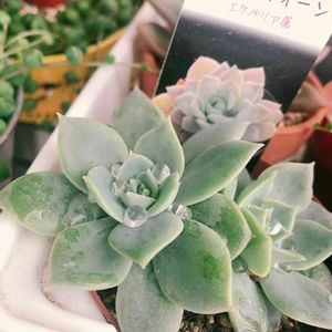 爽やかパステルグリーンな エケベリア・ファンクイーンさん😻💚🤍 リースに植えてましたが このコは茎が長くなるので 植え替えです😺 強いので 今度は地植え花壇行きかな😺💕