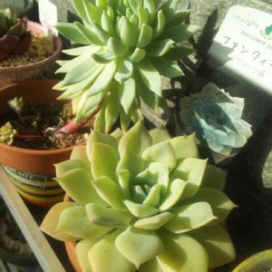 エケベリアの 桃太郎が一人ぼっちで 可愛いそうだったので 花うららと ファンクィーンの お友達を連れてきました(笑)