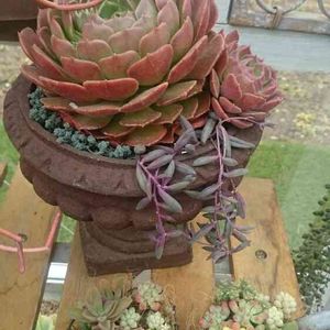 こちらはちょっと前に植えつけたブラウンローズとエレガンスです💡 今日はとてもいい天気でした😆⤴️私の誕生日も近いということで熊本の植木祭りとナーセリーズに連れていってもらいました😆💕 明日で植木祭りも終わりだからかお目当ての多肉さんとは出会えず😣近くで行われていた骨董市で工具箱を2つ安く買えました😁🎶 その後ナーセリーズで多肉と欲しかったプランターを購入でき大満足でした😆⤴️