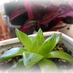 この時期、ぐんぐん育ったカワイコちゃん、あんまりいないよねぇ~😅💦 と、アチコチ眺めて見つけたのがこの子👀💡✨ 見切り品のちっちゃなリース型の寄せ植えに入っていたのですが、爪の先ほどのしかもカラッカラに干からびてました。 さすがにこりゃダメだろうと思いつつ一応水をやって置いていたところ大復活‼️😳 ぐんぐん大きくなって、もう二号ポットからあふれるサイズなんですよ❣️🥰🎶 元が寄せ植えなので名前は分からないのですが初ハオルチアなので大事にしています。 子っこ出して増える系だといいなぁ😘💕