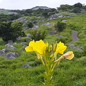 雌待宵草 メマツヨイグサ アカバナ科 マツヨイグサ属 北アメリカ原産 あちら此方で緑の草原を彩っていました 8月19日撮影