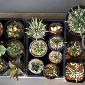 植物愛に満ち溢れた実生の達人kooさんの実生アガベ里親募集で 送っていただいたアガベ3種とご好意でいただくことになった アガべ2種です( ¨̮ )❥︎❥︎ 【実生アガベ】 💟アガベパリーネオメキシカーナ 💟アガベパリーネオメキシカーナシエラブランカ 💟アガベオテロイ 【豪華プレ🎁】 💟アガベ・楊貴妃 イベントでもなかなか出会えずお迎えしたいと 思っていた美人アガべさん☻︎ 世界三大美女の名を持つに相応しい“楊貴妃”です〜٩(ˊᗜˋ*)و めっちゃ美しいです〜🥰💞 💟アガベ・プミラ 個性的な仔吹き姿がユニークなプミラ✨✨ 既に仔吹いてます☺️💓 kooさん、大事にコツコツ育てられた子たち ほんとにありがとうございます⸜( ´ ꒳ ` )⸝♡︎ 植物繋がりに感謝です〜¨̮💖 植えた写真は次のpicで🙋🏻