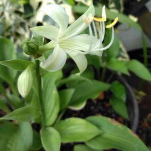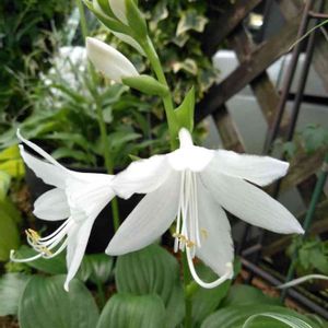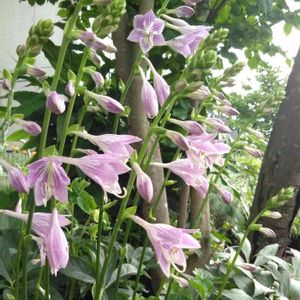 強風を支柱と共に耐え抜いて ヘビさんの蕾だった🐍ギボウシが咲き始めました。 頂いたギボウシで詳しい名前はわかりません。先祖返りしてしまったけれど、葉は白地に緑の筋が入っていました。 お花には、薄い紫のラインがはいっているようです。 台風の片付けしなくっちゃ!