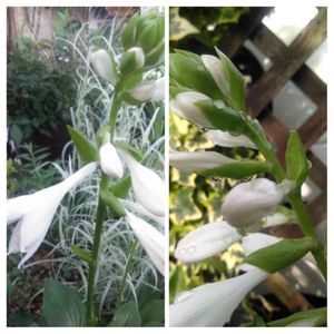 もうすこしかな? ギボウシ ロイヤルスタンダード🎶 白いお花が玉のようにぷっくりしてます(゜o゜💕 後ろのギボウシはレモニーさんのはず^^;今年も咲いてくれるといいなぁ!