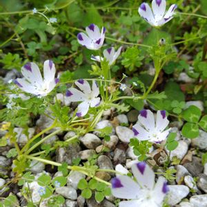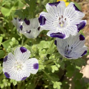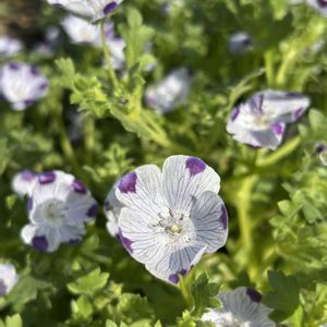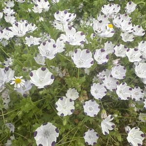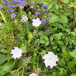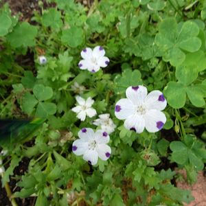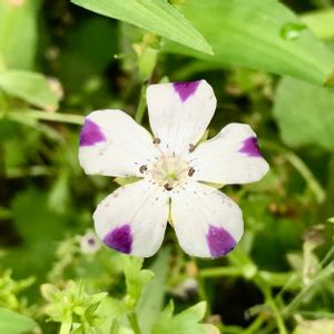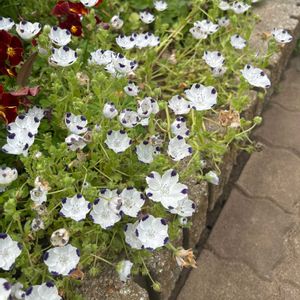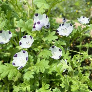 ネモフィラ マクラータ 零れ種の水玉模様のネモフィラです 昨日までお天気が良く、少し進んだ庭仕事とおサボり気味の家のお掃除 今日はのんびりボッーっとします☔️