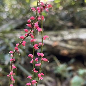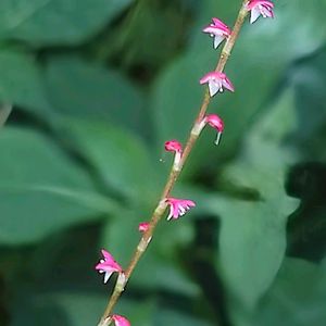 今日のお花❤️ミズヒキ❤️ 水引 タデ科 イヌタデ属 1️⃣秋が深まると、赤色がより一層濃くなって綺麗です❤️ 花が開くものはごく一部で、閉鎖花が多いです 咲き終わった花は閉じて結実します 2️⃣名前の由来 花の上部の半分は赤色❤️下部は白色🤍で紅白に見えます また白い部分が連なっている様と、赤い部分の連なりが水引に似ているという事です 花後は閉じた花(萼)から2裂した雌蕊の柱頭が長く突き出る 蕾の時は出ていない 3️⃣まっすぐ長く伸びています 4️⃣ギンミズヒキ(銀水引) 白花種 5️⃣葉には斑入りのものもあります 人面葉の様です 渓流沿いで ハロウィン🎃っぽくていいですねぇ〜