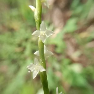 ギンミズヒキ(銀水引)タデ科イヌタデ属 ミズヒキの咲いてる場所の横にギンミズヒキも咲いてました。 しっかりお花が開いたいてので、綺麗な形に撮れました。 ミズヒキの白花品種。ミズヒキの花被片は4個に分裂し、そのうち上側3個が赤く、下側1個が白く、これがミズヒキと呼ばれる由縁だが、ギンミズヒキは花被片の4個すべてが白いものである。茎や葉などはミズヒキと変わらない。 🏷 白い水曜日♡ 🏷 白い貴婦人✨