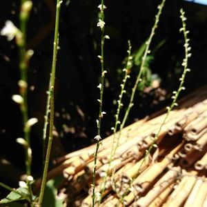 ギンミズヒキ(銀水引) 在来種。 タデ科イヌダテ属。 ミズヒキの白花品種。 山や森や里山、いたるところにたくさんミズヒキを見るようになりました。 わたしは花が開いているミズヒキに出会ったことがなく、みなさんの写真を見て不思議に思っていましたが、どうやらミズヒキの花が開くのは、午前中の数時間だけだと知り軽く衝撃を受けました。 花期8-11月。 時期的に、間に合ってよかった〜 今度は花開くミズヒキに出会いたい。