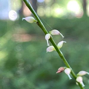7月22日撮影 彩の森公園 nao師匠に教えていただいたAFロック機能を使って、アップの撮影に挑戦! この機能はとても便利ですねー! 去年はあんなに苦労したミズヒキの撮影が😂 ミズヒキは8月から11月にかけて、花の時期は長く、ずっと見られます。 (うちの職場の排水溝の蓋の中には、6月からずっと咲いています…😅) しかし、ミズヒキの花が開くのは午前中の数時間だけ。 花が閉じている間は米粒のようにかたく小さなつぼみから、雌しべの先端だけが見えます。 …と書いてありましたが、まさに! ちょろんと雌しべの先が見えていますね。 なんだかアサリが呼吸しているようです😆 このとき時刻は8時。まだ咲いていませんでした。 ギンミズヒキ タデ科イヌタデ属 これは花の色が白いギンミズヒキです。 ミズヒキの白花種です。