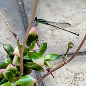 幸せの青いトンボ─💙 出掛ける前に 花壇チェックしていたら、 いきなり目👀の前にお出まし⤴ きっと、いい知らせになるかも…😊