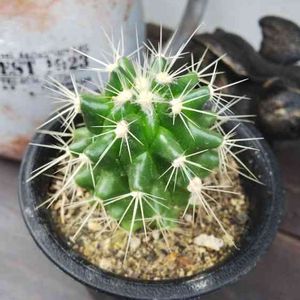 サボテンゲットだぜー 鉢も元々は白だった物を シルバー塗装からの茶色いニスを塗布してアンティーク銅鉢っぽく 土はエクサゴノさんの超硬質焼成培養土 小粒 10L 3mm-6mm サボテン コーデックス 1、2週間後水やりまで日陰管理! 早く大きくなれー