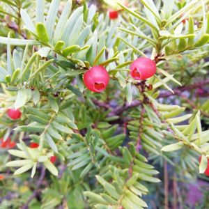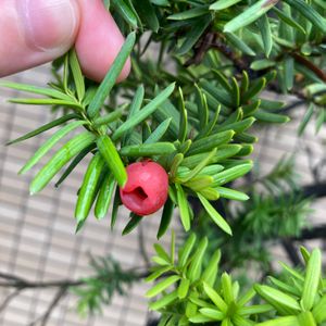 実家の目の前にわさわさとあります。笑 おんこの実。 小さい頃赤い実をもいで食べてたけど 真ん中の種に毒があるというのを後で知った、あぶないあぶない!
