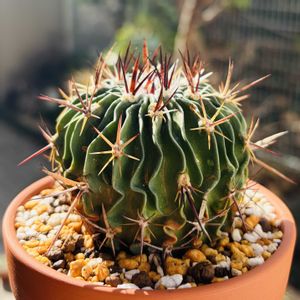 20250818 縮玉 ¥400 こちらも同じ農園さんからまとめて。 赤いトゲとひだひだが手持ちの子と一味ちがって見応えがある。 鉢小さいかな🤔 どう?居心地は?