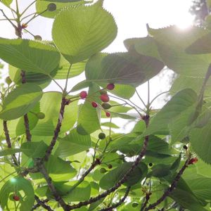 🌿🍒🌿 オオシマくんは木ぜんたいに青い実が たくさ~んプラプラプラー🍒 ソメくんは木のところどころにプラン プラン🍒 そして、ベニユタカさんは葉桜に~🌿 ベニユタカさんて、お花がパッと開いたときには淡いピンクに変化してたのに、しぼんだらまた濃いピンクに戻ってる(((*≧艸≦)💟