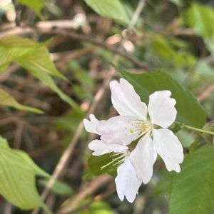 オオシマザクラ満開! 近所の雑木林に毎年地味に咲く桜 花と葉が同時なので 新緑に白い花が映えます うっすら薄紅色も推しです 大好きな樹木🌿
