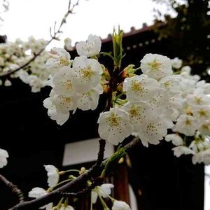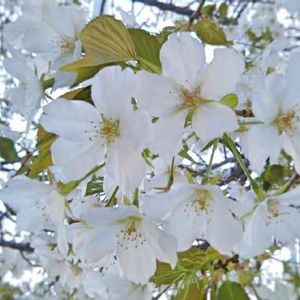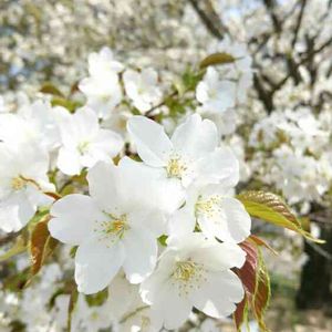 今日も暖かくて良い天気でした😄☀ 大島桜もかなり咲いてきて、7分咲きくらいに。 純白で、端正かつたおやかな印象の大きめのお花✨ 香りも強めで素晴らしい💕 桜葉の塩漬けはこの桜が使われるとか。 あ~桜餅食べたいな~😁