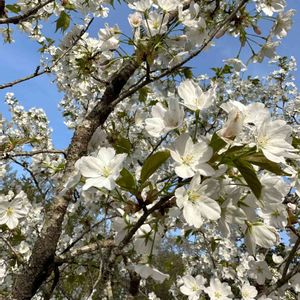 オオシマザクラ(大島桜)。 バラ科サクラ属。 日本に自生する桜野生種の一つで日本の固有種だそう。 真っ白い花が清々しい✨ 4月3日撮影 蜻蛉池公園