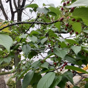 🏷つぶつぶの日 🏷ビューティフルサンデー 大島桜にたくさんの実が付いていました🍒 赤から黒に熟したら美味しそうだけど、食べられるのかな? 5/15撮影🤳✨ 先日の風で、実はもう落ちたかな、、、