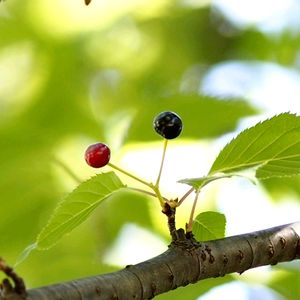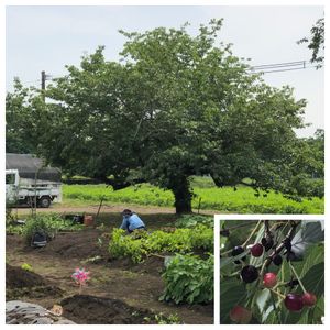 大島桜 新緑の季節 たくさんの新葉と共に色とりどりの実がなっています。 もうすぐ食べ頃♪ 今日から5月、早いですね〜