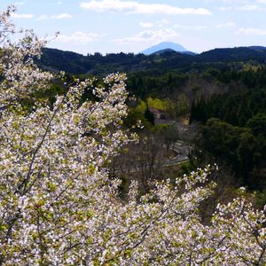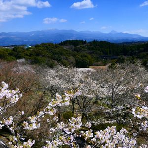 霧島市丸岡公園では、オオシマザクラ等が咲き、霧島連山を遠景に絶景でした🎵
