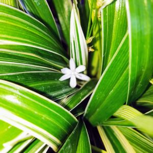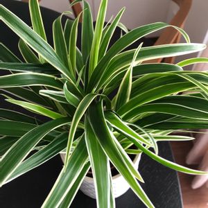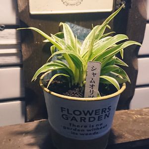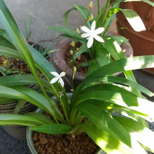 シャムオリヅルランと言います☺️ 普通のオリヅルランと違ってランナーは出ないそうです😊 白いお花がなんかかわいい💕🌼
