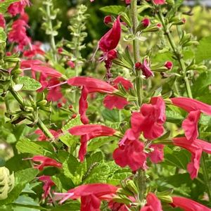 今日の庭の様子 ①サルビアコッキネア 今日のお花 ②サルビアレウカンサ 今日のお花 ③ペンタス ④コムラサキ ⑤カリブラコア