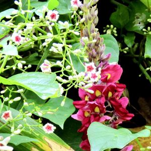 季節のお花・季節のウチに 緑のトンネルの屋根、 クズの花と早乙女葛が補強して、ますます立派なトンネルになっています♡ 9月中旬、台風前に