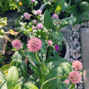 今日のお花『センニチコウ』 こぼれ種&冬越し株が咲いています。 ❤️ストロベリーフィールド 💗エレスチャル 5️⃣ 昨年は、(勝手に)センニチコウ畑が出来て、たくさん咲き満足😄 でも後始末が大変でした💦💦 今年は増やさないように引っこ抜いて減らしましたよ。 何事もほどほどに😅