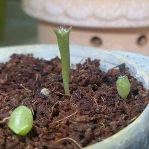 某、通販のサボテンガチャ カプセルに水でふやかした土を入れ、大2、小8の種を乗せました。 乾燥しないように注意して、これからに期待👍