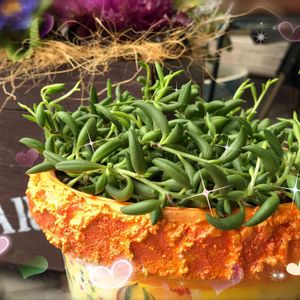 こんにちは╰(*´︶`*)╯♡ 天気予報は当たらない😢 お天気じゃねーし😔 朝から多肉ちゃん達を外に出したはいいけど雨になってきたから家の中へ🏠 ただ今、13時50分。 少し晴れ間が… でもすぐに雲ができて日陰💦💦 あ〜 今日も日光浴はお預けだ〜😢 なら、三日月ネックレスさんの植え替え🌵 植え替え〜〜 デコパージュした大きめの鉢に植え替えました🤗 植え替えてあげてよかったですよ。小さい鉢の中で根っこ達がぎゅーぎゅー💦パンパン💦でした😢 新しい鉢で思いっきり大きくなってくださいませ❤️
