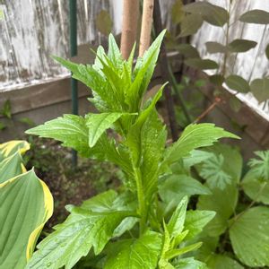 野草だらけの花壇の中でひときわ高く茎を伸ばしているのはオオアレチノギク。 1メートルはあるでしょうか。 オレンジ色の花のように見えるのは、咲いた後の綿毛。 舌状花は総苞に包まれていて目立たないので、綿毛の方が花に見えてしまいます❣️