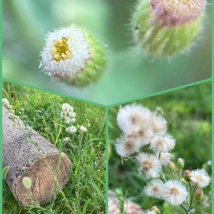 雨上がり早朝散歩🚶♀️🎶 道端のこの花はキク科の野草と判明しました🌱綿毛ぽわん、花もかわいいけど名前は強そう😊