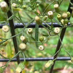 オオアレチノギク。夏に空き地とか占領するアレ。一瞬葉っぱにトゲがついてる?🤔から違うかなと思ったら、どうやらそれは毛のようでした。茎にも沢山毛がついてます☺