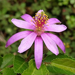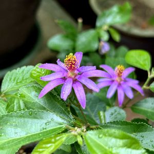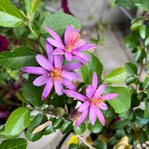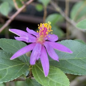 おはようございます☁️(22℃) 盆栽に使われスイレンに似た小さな花のためスイレンボク(睡蓮木)というそう。 紫色の花弁の真ん中に黄色い雄蕊が可愛い💕