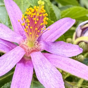 こんばんは〜😊 今日の天気は雨☔ 最高気温28度 最低気温23度 お出かけ先〜🚙 実家の庭より🌸🌼🌺 💜スイレンボク💜 🤍ツルヒヨドリ(蔓鵯)🤍 本日、2投稿目になります🙇♀️ 今日は用事があり実家へ🚙 以前にクレマチスの苗と間違えて購入してしまった苗木(スイレンボク)を実家の庭に鉢植えにして置いていました🪴盆栽をしている弟に盆栽に使用出来ればと…所がそのままになっていて…😅雑草(ツルヒヨドリ⁈)に覆われながらもスイレンの花に似た綺麗な紫色のお花が咲いています💕🌿💜🌿 実家に置きっぱなしにしてごめんね🙇♀️少しだけ雑草を取り除き伸びた枝をカットして持ち帰り挿し木にして育ててみようと思います🪴 💜睡蓮(すいれん)のような美しい花を咲かせる樹木。花は開いたり閉じたりを繰り返し、しばらくの間咲き続けるという面白い性質を持っています。また初夏~秋口まで気温の高いシーズンは次々と蕾を付け開花💕長い間楽しむことが出来ます! スイレンボクを覆い尽くすように咲いている可愛い白い花は何でしょう⁈🤔Google検索🔍して見ました!🤍ツルヒヨドリと出ました! アメリカ大陸原産のキク科の植物🌿 繁殖力が非常に高くツルを絡ませて他の植物を覆い枯らしてしまう⚠️ 線香花火のように小さな花が集まり蔓から垂れ下がるように咲いていますね💕🌿🤍🌿🤍🌿こんなに可愛い草花なのに…😅 沖縄県では、ツルヒヨドリは重点的に駆除等を行う必要がある外来種として「重点対策種」に指定されています! 💜•*¨*•.¸¸☆•*🌿🤍🌿•*¨*•.¸¸☆*・💜