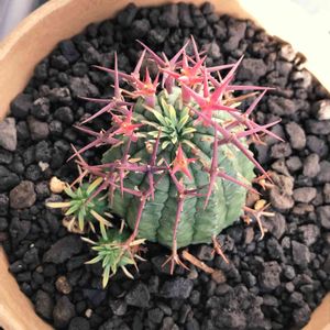 多肉植物も色々な属がありますが、私は特に 〝クラッスラ属〟〝アドロミスクス〟〝メセン〟〝ユーフォルビア〟系統が大好きなんです(〃▽〃) そんな訳でしばらくは季節的に今から成長が活発になる〝ユーフォルビア〟系の仕入れが多くなりそうです♪ 真ん中の赤棘の子は〝群星冠〟花が咲いた後の花柄が棘になって星のように見える事から そんな名前が付いたのだとか。。💡 バリダみたいな感じですね♪ 何だかガチャピン見たいで可愛いでしょ(*ˊᵕˋ* ) この子も割とどこにでもいないタイプですよね〜 今は丸めですが古株になると縦に伸びてきてめちゃくちゃかっこよくなります💨 いつも、いいねやコメントありがとうございます(^-^) 色々発売控えてる商品の準備もあり なかなかゆっくりGS出来ないのですが(/_<。)どうぞよろしくお願いします☆ そんな感じで本日もぼちぼちいきましょうね🍀