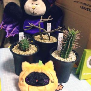 昨日は相方のオトモで中野ブロードウェイに行き、ハロウィンの猫だんごぬいぐるみをゲット♪ そのあと、初めて池袋の西武屋上にある鶴仙園さんにお邪魔しました(=´∇`=) 立派なもの、レアなものが沢山ありましたが、私が求める小さくてお手軽な子達を連れ帰りました♪ ユーフォルビアのフェロックス、群星冠、プラティクラダです♪ 慣れない長時間の満員電車で 帰宅後体調悪くなり寝落ちしちゃった…_(:3 」∠)_都会の電車は怖い…