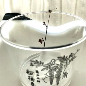 ハートカズラ♥️がいまいち元気がないので、水差しで増殖を計画中。 豆カンを美味しく食べた後の船橋屋のカップは藤のデザインも美しくて、置いておくと絵になる。