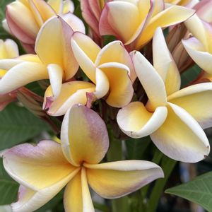 今日のお花 ⁑ プルメリア🩷🧡 …優しい花色がステキです☺️ ⚫︎⚪︎⚪︎