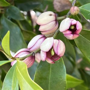 お散歩中に見たお花… カラタネオガタマ(唐種招霊)🌸 トウオガタマとも… 香りもあります♪ ⚫︎⚪︎⚪︎⚪︎⚪︎