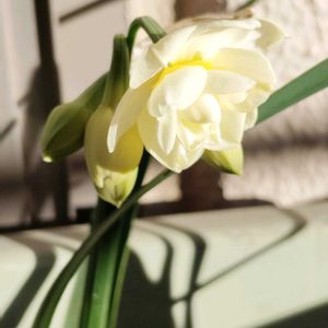 房咲き水仙も咲きました🤍✨🌿 副花冠も白いので 清楚な雰囲気がします。:.゚ஐ⋆* 昨日今日と雨が降ったり止んだり☔️ 雨に濡れて お花も少し冷たそうです𓂃𓆸💧