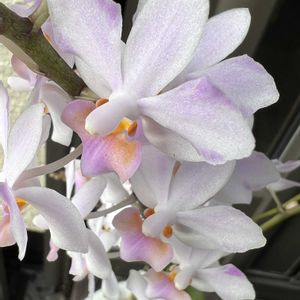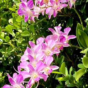こんばんは😊 今日の天気は晴れ時々曇り🌤️ 最高気温31度 最低気温27度 お出かけ先〜コザ運動公園にて🌸 🍃🩷ラン🩷🍃 今日〜孫の運動会で訪れた公園内の木々にランの花が着生されていました💕😳デンドロビウムでしょうか⁈ デンドロビウムは着生ランの一種(着生ランの代表種)ですね🍃🩷 着生ランは自生に近い花姿が美しく見応えがありますね😍 樹木の幹や枝からしなやかに垂れ下がるように咲く淡いピンク色に紫色の花がが目に入り…パチリ📸とても綺麗でした💕🌿🩷💜🌿🥰 🌿•*¨*•.¸¸☆•*🩷🌿💜•*¨*•.¸¸☆*・🌿