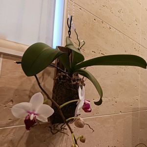 こんばんは!🌃 今年も咲きましたー❣️٩(^‿^)۶ 一気に咲いてくれて…カワイイ😍 緑の葉より赤茶の葉は咲きやすいらしいです! 葉より長すぎる根が目立つ〜!🤣 縦25㎝位の板に着生してます!