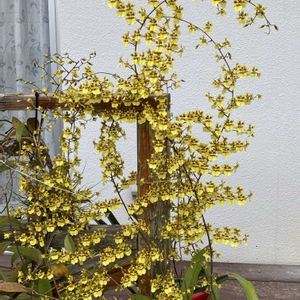 おはようございます!😊 今年も咲きました❣️ 雨風ざらしで植替えせずギュウギュウ詰の鉢から8本の花枝が…!😁 こちらは4日のpicで昨日からの土砂降りで今は花枝がうなだれてます!
