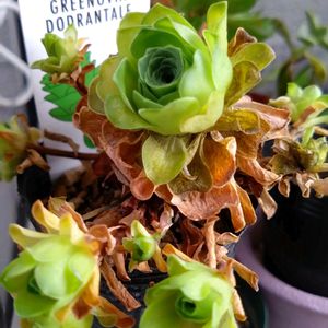 ①眠りはじめたドドランタリス ②今年はあまり紅葉しなかったマジョールですが、鉢いっぱいに増えました もうじき可愛い花の季節🩷 ③冬は可愛い紅葉を見せてくれたウインクレリー みどりになって脇芽も見えてます🌱
